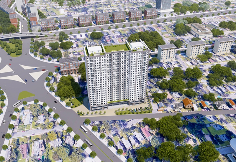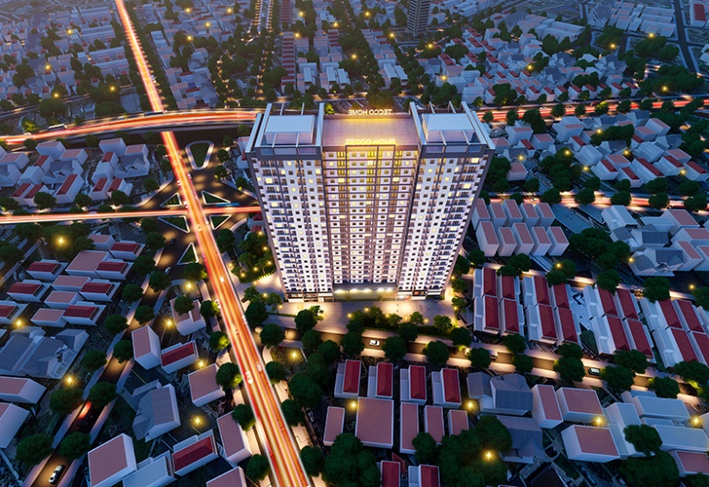 Kiến trúc 22 tầng nổi và 2 tầng hầm, Dự án Tecco Home là biểu tượng của sự phát triển tột bậc về cơ sở hạ tầng giữa hai thành phố Thuận An và Dĩ An.